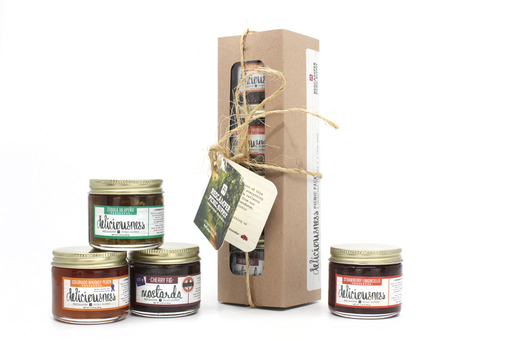 4 different flavors all packed into one box. The crowd pleaser Whiskey Peach leads the pack with Strawberry Limoncello and Tequila Jalapeño following suit, and bringing in the rear, our award winning Cherry Fig Mostarda.