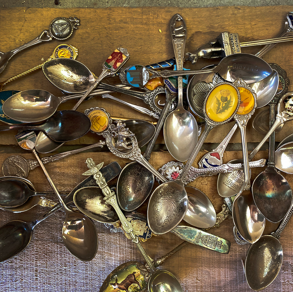 We have all seen these on our Gramma's walls. Cabinets of hanging souvenir spoons from travels over the years. We found these precious little gems to be perfect for spooning Deliciousness out of jars. Due to these one of a kind relics we cannot guarantee which location you will get. Consider it spinning the wheel of travel fate.